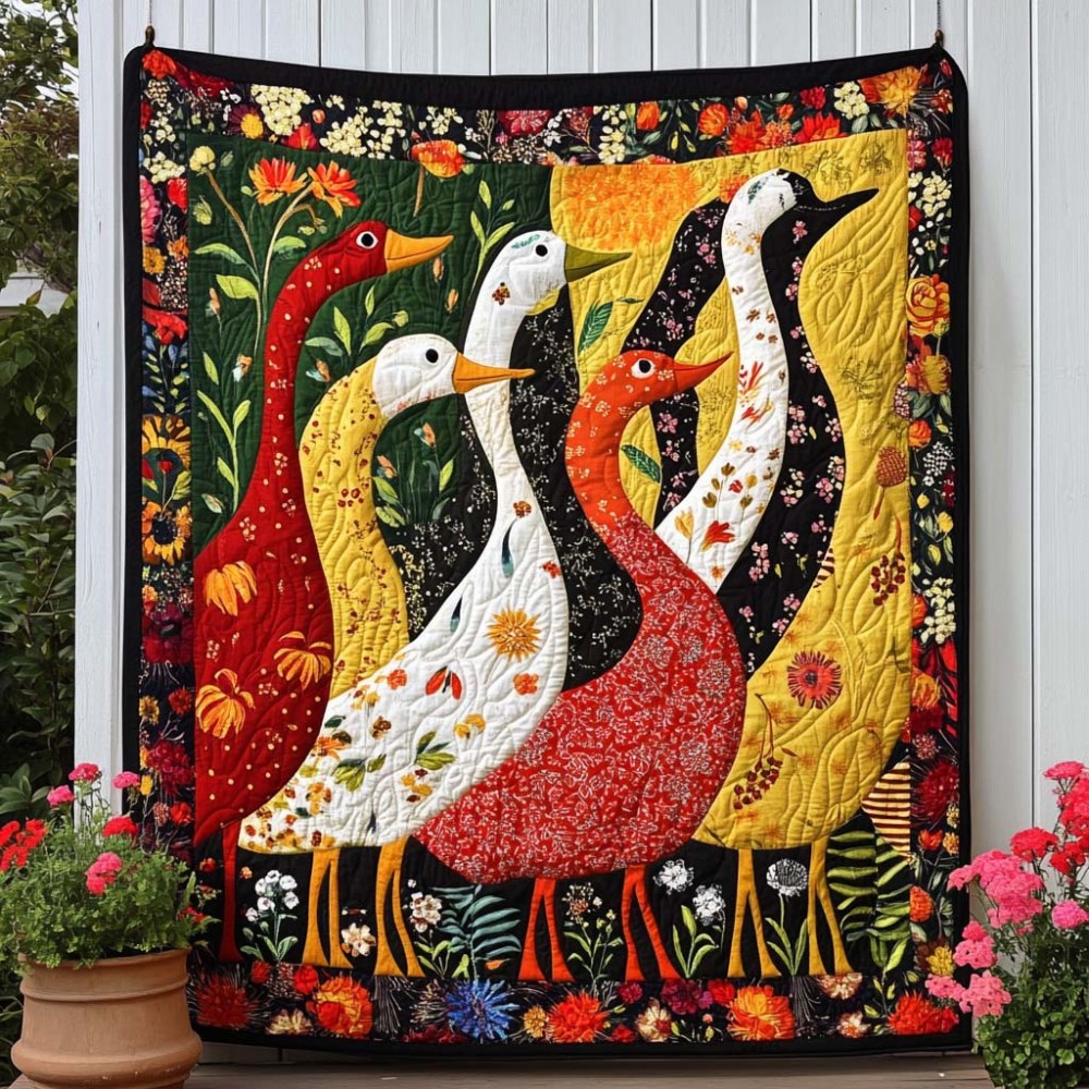 Autumn Duck Dance Quilted Blanket Best Throw Blanket Gift Ideas For Duck Lovers.