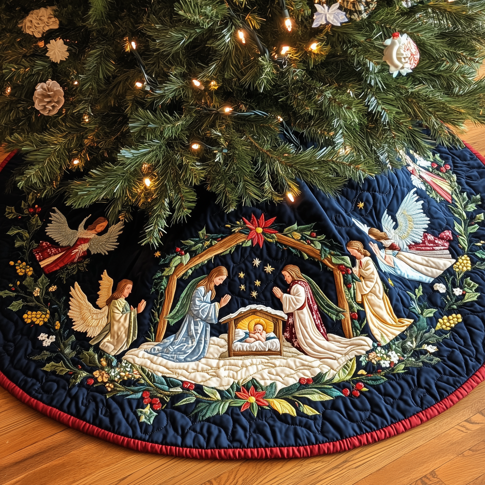 Christ's Arrival Quilted Tree Skirt Indoor Xmas Tree Decorations Nativity Scene Home Decorations - Bancroftclothings