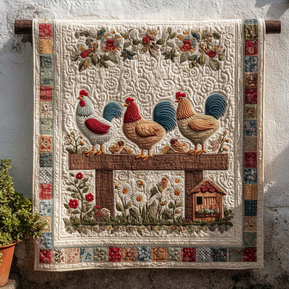 Country Fence Roosters Quilted Blanket Bedroom Decor Christmas Skull Stuff For Guys - Bancroftclothings