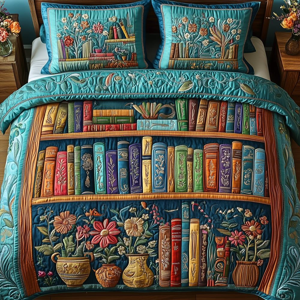 Cozy Library Quilted Bedding Set Duvet Cover Bedspread Gifts For Book Lovers Friends