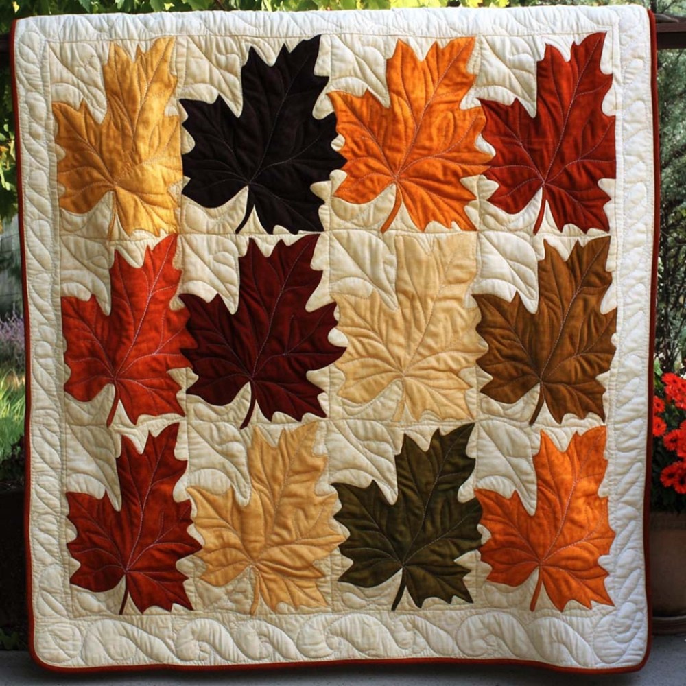 Golden Leaf Dance Quilted Blanket Fall Theme Blanket Family Gift Ideas For Christmas.
