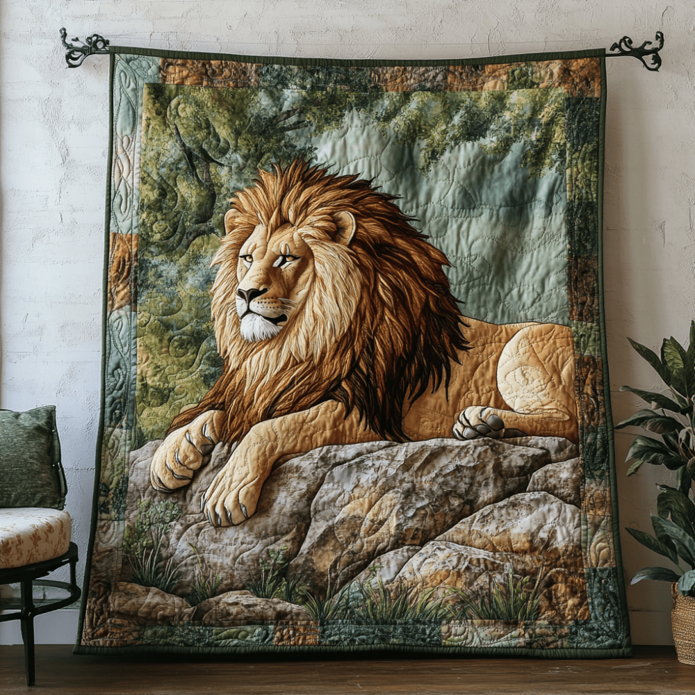 Golden Lion Quilted Blanket Christmas Bedroom Decor Gifts For Wild Animal Lovers