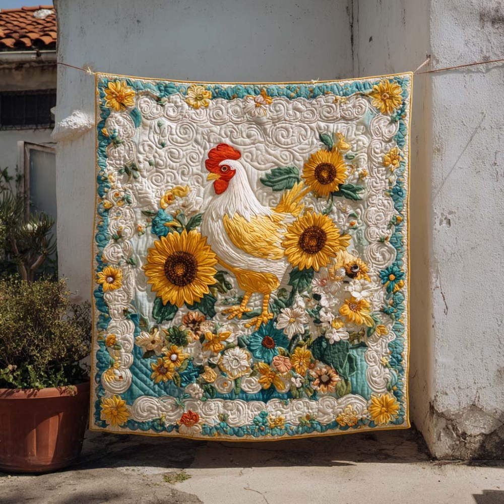 Golden Rooster Bloom Quilted Blanket Christmas Room Decor Themed Skull Gifts For Him Her - Bancroftclothings