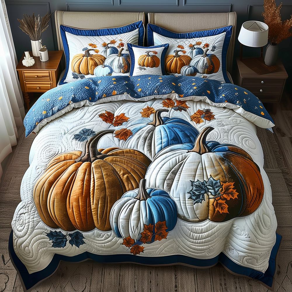 Pumpkin Haven Quilted Bedding Set Fall Festival Illustration Autumn Xmas Bedding Presents.