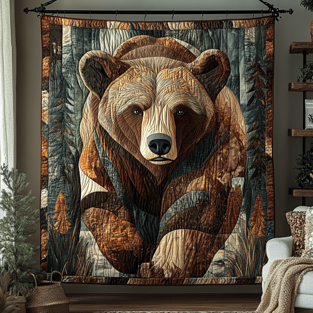 Rustic Bear Haven Quilted Blanket Winter Decor Blanket Bear Theme Gifts - Bancroftclothings
