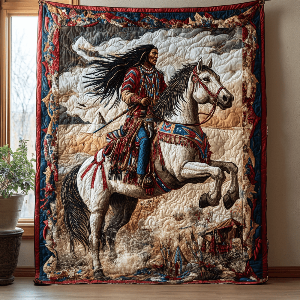Sacred Horseman Quilted Blanket Christmas Holiday Native American Gift Ideas - Bancroftclothings