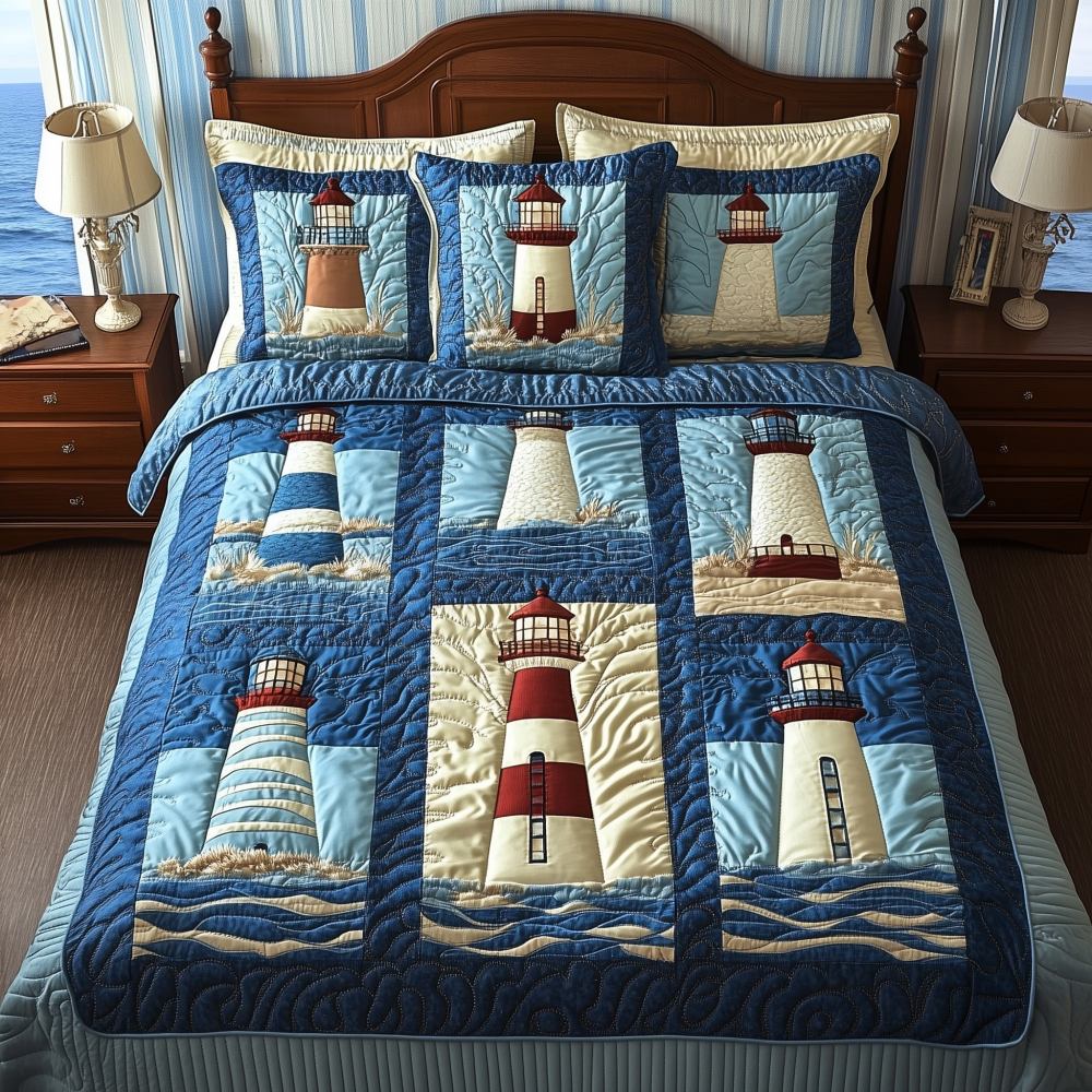 Seaside Serenity Quilted Bedding Set Duvet Cover Bedspread Best Lighthouse Gifts