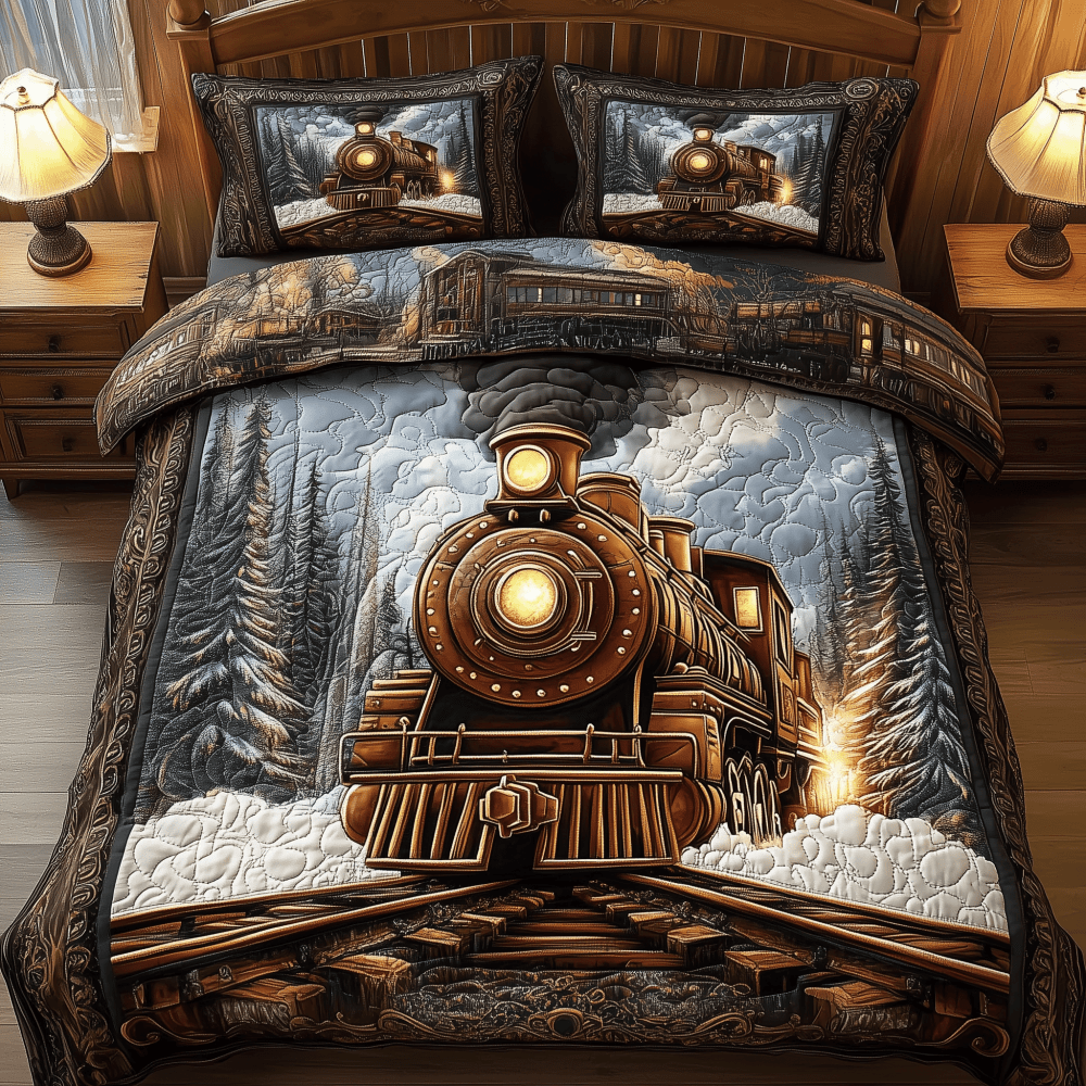 Vintage Train Quilted Bedding Set Stay warm this winter Christmas Presents For Wife - Bancroftclothings