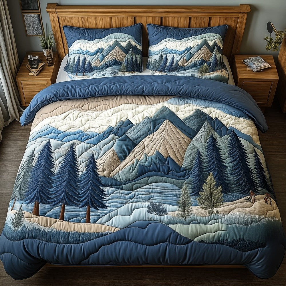 Woodland Retreat Quilted Bedding Set Snowy Pine Forest Illustration Winter Nature Gift Ideas - Bancroftclothings