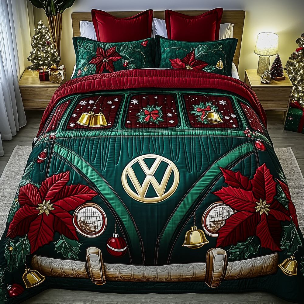 Yuletide Van Quilted Bedding Set Cozy Xmas Home Decoration Christmas Bedding Gifts - Bancroftclothings